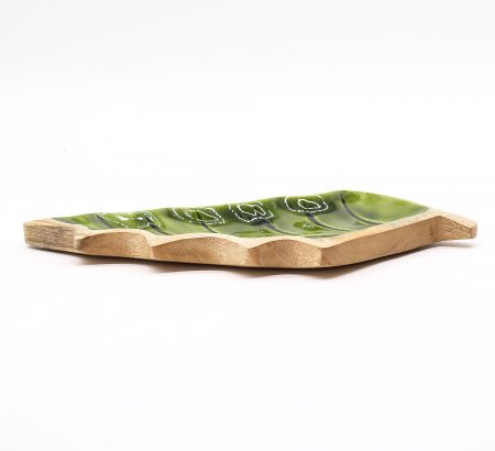 Lost in the Forrest – Enamel Leaf Wooden Bowl – 33x17cm